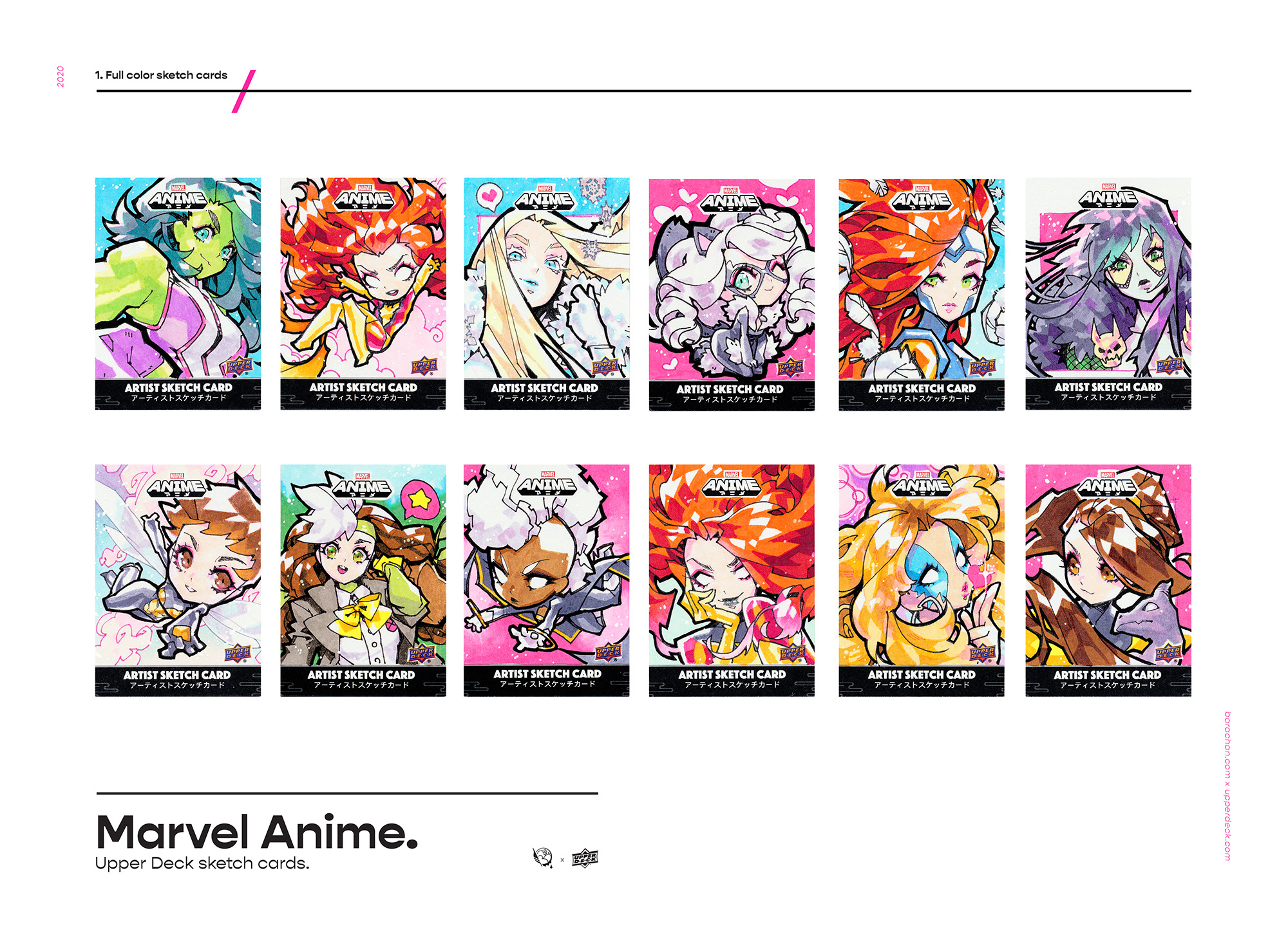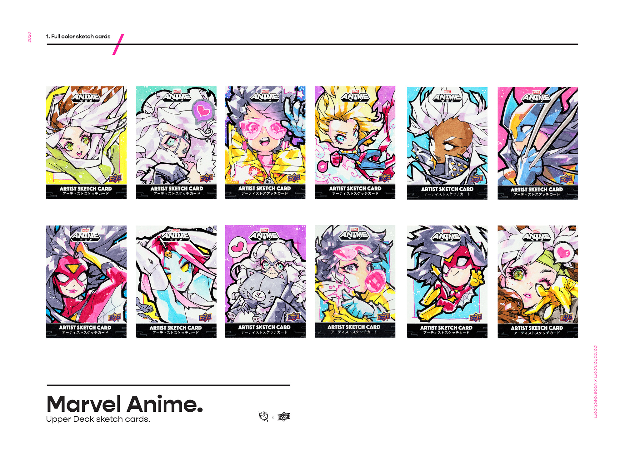 75 full color cards created for Upper Deck's Marvel Anime 2020 trading card set.
